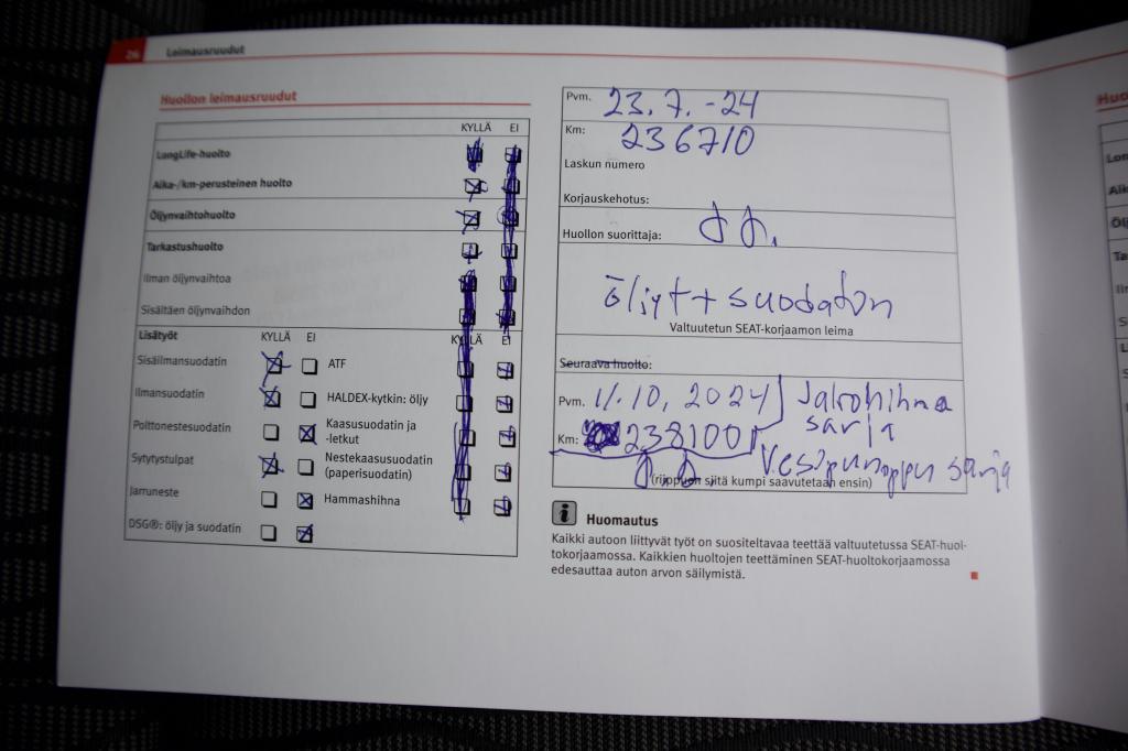 • Huoltokirja